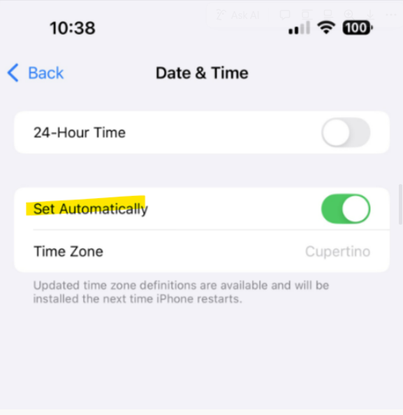 On your device, navigate to Settings -> General -> Date & Time and have them select "Set Automatically"